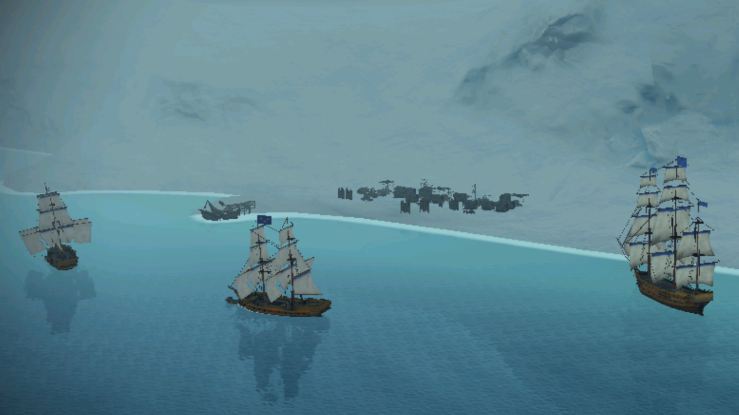 Alonzo pursued the admiral in an ice maze. Despite having escaped French patrols and mines, Alonzo lost the ship.