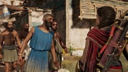 • Metiochos: Well that must have been a terrifying experience for them. Thank you for your help, misthios. I'll be sure to mention this to Perikles.