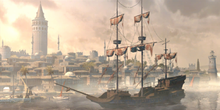 • Just before leaving with Yusuf, Ezio could interact with and speak to two characters on the docks; a civilian to the left of the ship, and an Ottoman guard to the right.