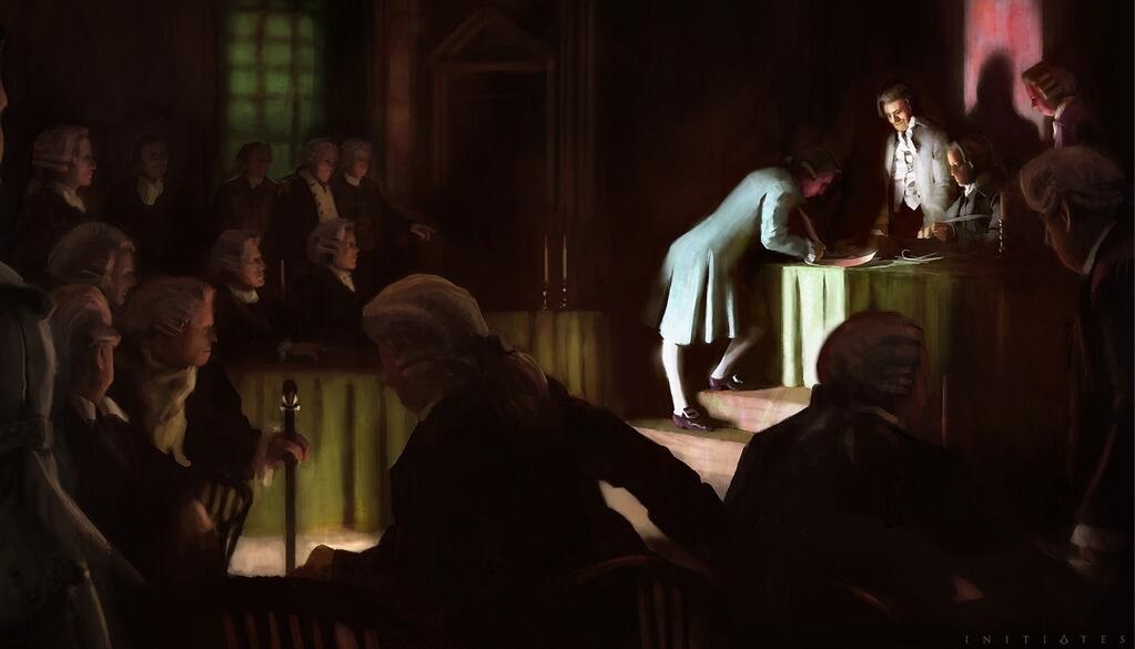 Meanwhile, Major Benjamin Tallmadge, a spy for the Continental Army, investigated on the plot to assassinate Washington and discovered that the bodyguard Thomas Hickey was the hitman. As his father was an Assassin, Tallmadge asked help to Connor to stop Hichey in New York City. The Assassin tracked Hickey in the city but they were arrested and sent to Bridewell Prison as Hickey counterfeiting money. The Templars liberated Hickey and accused Connor of the murder of the prison's director and for plotting to kill Washington. The Templars would profit of the execution to kill Washington. The 28 June, Connor was hung at the stake but his father cut the rope with a throwing knife. The Assassins also intervened to help Connor. As Hickey tries to assassinated Washington, Connor killed the Templar. After this Connor went to Philadelphia to warn Washington about the war between the Assassins and the Templars but his Mentor refused as it would be more dangerous for the Commander-in-Chief. The 4 August, the Declaration of Independence was ratified and Connor assisted of the first signatories. The other delegates were protected by the Assassins during the road to Philadelphia.[1]