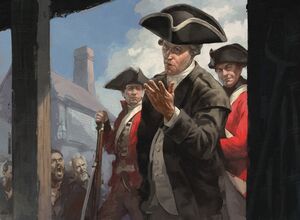 On the 5th of March 1770, in Boston, a public argument about a wigmaker's bill turned in a mob surrounding eight British soldiers at the steps of Old State House. The Captain Thomas Preston tried to calm the situation. The Templar Charles Lee created the confusion by firing on a rooftop. The soldiers, believing that the mob was armed, shot on the civilians, killing five persons and wounding six others. The Kanien'kehá:ka Ratonhnhaké:ton, an Assassin initiate and Haytham Kenway's son, was accused of firing on the soldiers as he tried to stop another Templar sniper. The Mohawk was helped by Samuel Adams who used his connections in the printing press to erase the implication of Ratonhnhaké:ton. The event was remembered as the Boston Massacre, and the silversmith and Patriot Paul Revere mediatized this event to show the cruelty of the British Government. The soldiers were judged for murder. John Adams, Samuel's cousin, defended them and acquited six of them. The two others were convicted for manslaughter. The British troops were removed from Boston. This events increased the division between Patriots and Loyalists.[1]