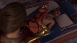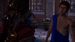 Kassandra:I'm just here for Thespis. He's drunk, and I need to get him home.