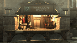 Each painting increased Monteriggioni's value, with the higher the price, the higher the added value. Paintings sold by art merchants changed depending on what region they were in. Once purchased, they could be viewed at the Villa Auditore's second floor painting gallery while also providing some background information on the painting itself and its artist. Art merchants were not as common as blacksmiths or doctors, but there was at least one situated in each city.