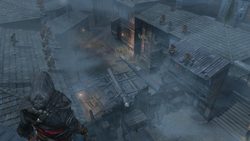 Replacing the Borgia Towers are the Assassin Dens, towers which act as strongholds for the Assassins, but differing in that they can be reclaimed by the Templars; whenever Ezio's notoriety would reach its peak, Templars would attack an Assassin-occupied Den. In order to defend the Den, Ezio must take up its defense, whereby numerous Assassin units of different specializations can be stationed over nearby rooftops to defeat the invading Templars. Numerous abilities can also be used to help defend the den, such as barricades and cannons.[3]