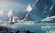 The primary locations in the game are New York City, the Hudson River Valley, and the North Atlantic, specifically, the area around Newfoundland and Nova Scotia known as the Gulf of Saint Lawrence. The North Atlantic is an icy water-based region, where icebergs can be used as cover during naval combat, as well as broken to reveal frozen cargo and Animusdata fragments. With the help of an ice-breaker ram, navigation is supplemented and additional secret areas can be reached. Meanwhile, the River Valley is a hybrid of land-based and naval gameplay, with seamless river navigation integrated into a map reminiscent of the Frontier from Assassin's Creed III.[7] New York is also bigger than its first appearance in Assassin's Creed III, as it is 20 years before the Revolution and so the Great Fire of 1776 has not happened yet. All together, the three regions require more exploration than all of Black Flag.[8]