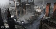 Although New York features heavily in Rogue, it was critical to Rogue's Art Director Eddie Bennun that the concept art not use the same color palette as Assassin's Creed III. The art team followed Raphael Lacoste's example, looking into landscape pieces by Albert Bierstadt and Aldro Hibbard in order to get a feel for the brighter atmosphere of the times. The intent was to depict New York not just as the bustling city from Assassin's Creed III, but as "the true New World's business and industrial center". Likewise, concept art for the River Valley mainly used bright "organic shapes and composition" to reflect the Valley's gentle, rolling topography that is dotted with small trading posts, forts, and Indigenous settlements.[18]