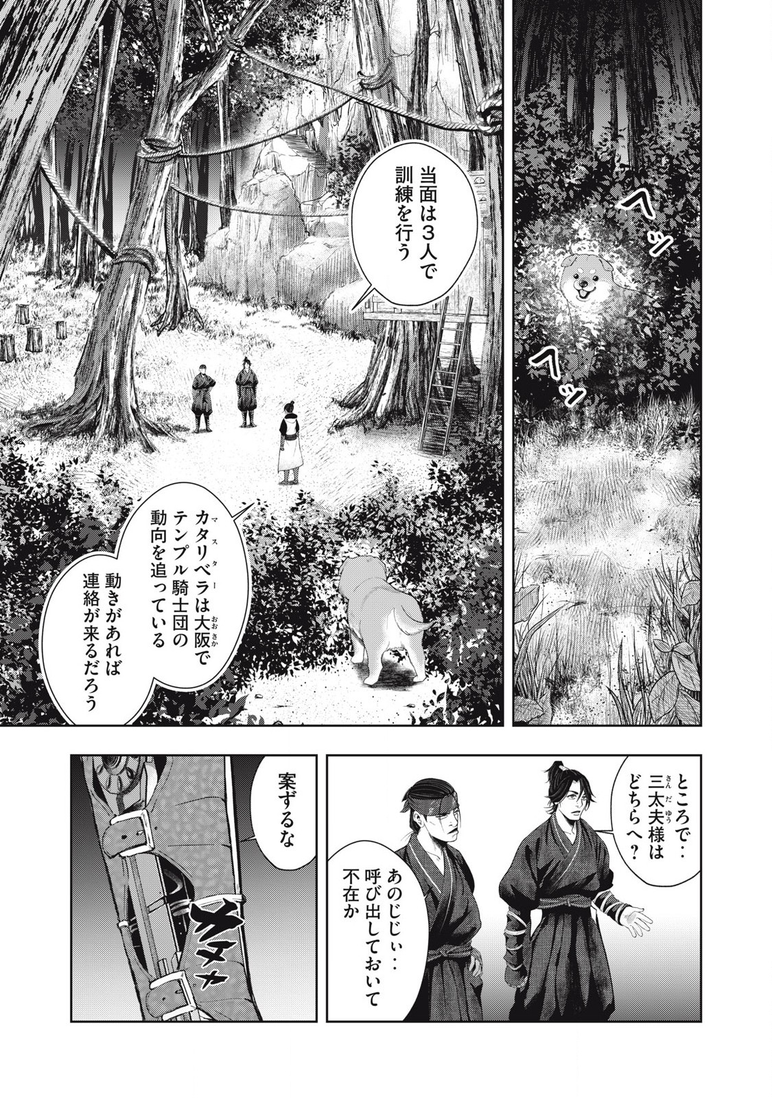 Surprised, Tsuyu asks what he is doing, to which Masayasu explains that a serpent was on the ground, so he decided to save her. Thankful, Tsuyu takes a look at his eyes intensely before demanding to be put down. Masayasu then recalls a moment after yesterday's meeting where he asked Sandayu why he was chosen given his short tenure. Sandayu admitted that Tsuyu had noticed something in his eyes and how he could see things others could not.