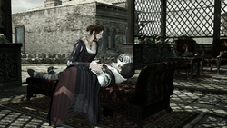 While walking, Ezio complimented Caterina on ruling her own city, remarking it was very impressive. Caterina agreed, but reminded him that the city had once been ruled by her husband, until his recent passing. Ezio offered his condolences, only for Caterina to tell him there was no need, as she had him killed.[2]