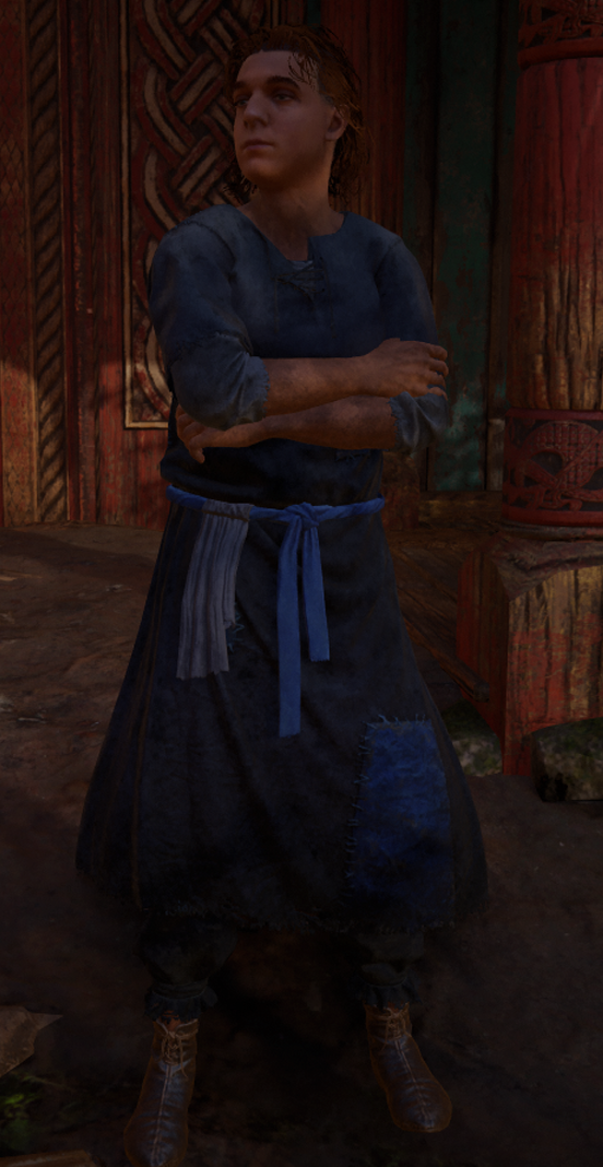 During the Yule festival in Ravensthorpe, Bertham was put in charge of looking after the cows bred for the festival. When he took them to the river hoping to slay the animals himself and impress Mayda, one of the cows scared him and he ran off. The Viking shieldmaiden Eivor Varinsdottir was subsequently asked to help Bertham kill the cows and retrieve their meat.[2] After killing the cows with Eivor, he decided to participate in the brawl in the arena.[3]