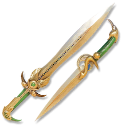 The Blades of Thoth were short blades inspired by and dedicated to Thoth, the Egyptian god of writing, magic, wisdom, and the moon. With pommels shaped like the head of ibis, and bright green handles, the dual blades were as beautiful as they were deadly.