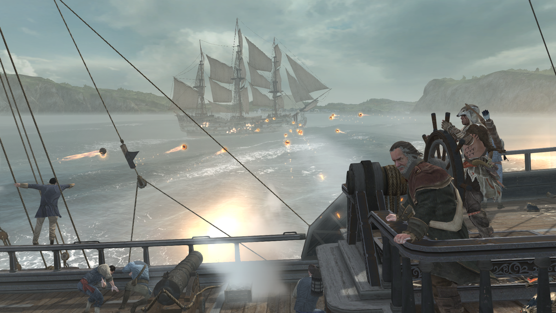 Ratonhnhaké:ton took control of the wheel and destroyed the oncoming fleet. After destroying ships, the crew searched the wreckage. Ratonhnhaké:ton turned to Faulkner.