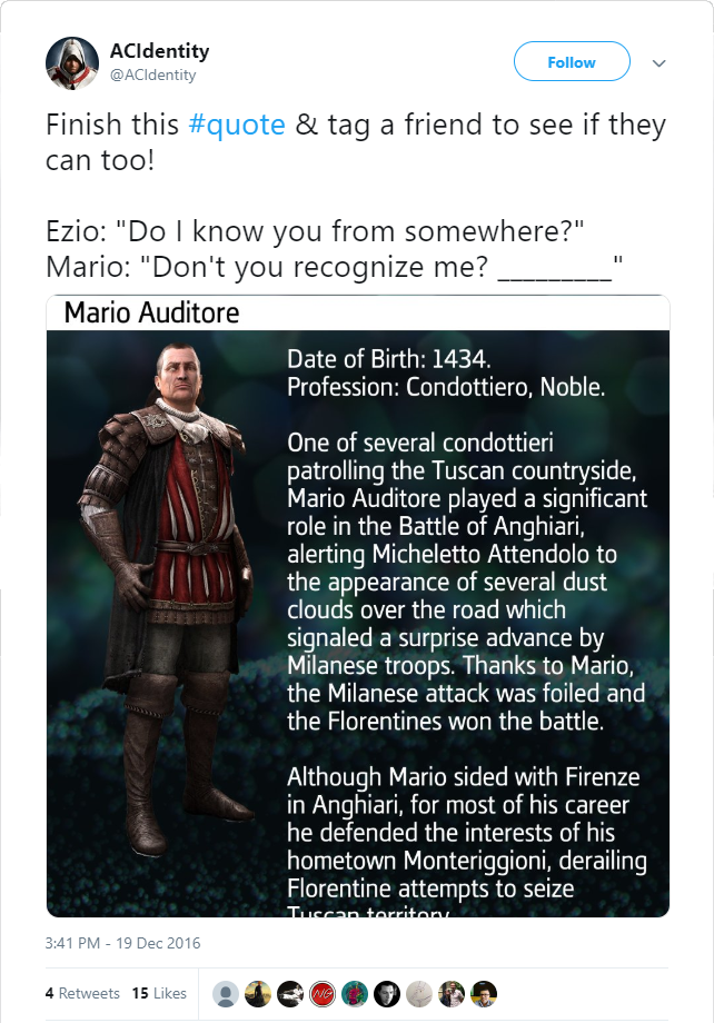 The Mario Auditore Database post by @ACIdentity on Twitter |