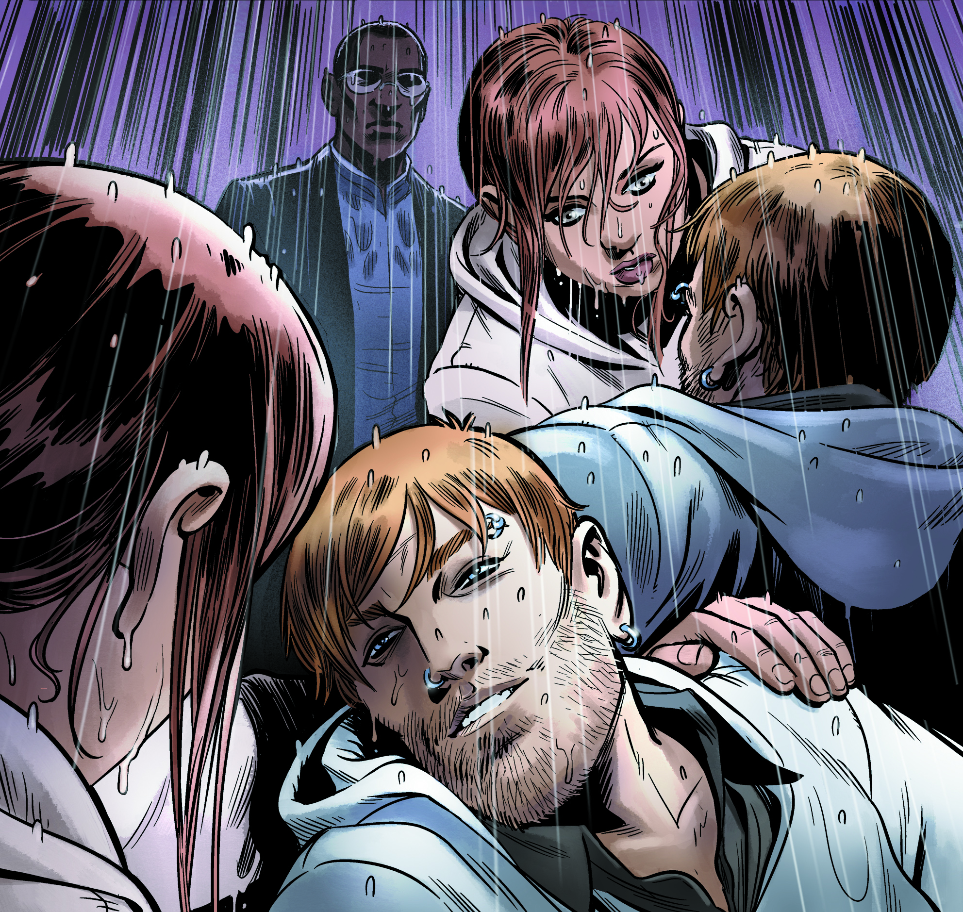 Daniel Cross revealing his "purpose" to Hannah Mueller, with Paul Bellamy in the back. |