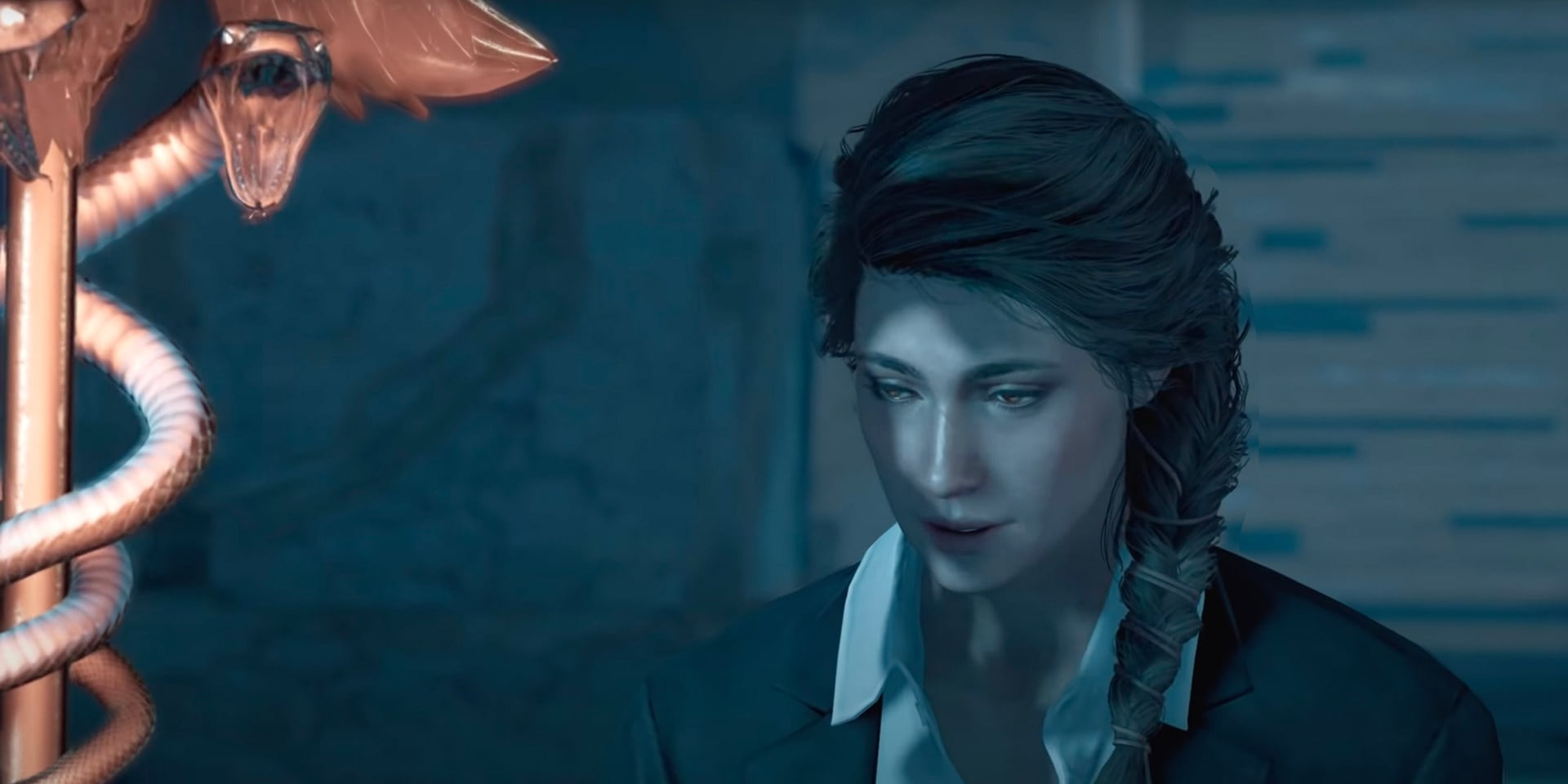 Kassandra holding the Staff of Hermes Trismegistus for The Twelve Trials' tenth Assassin's Creed: Odyssey question |