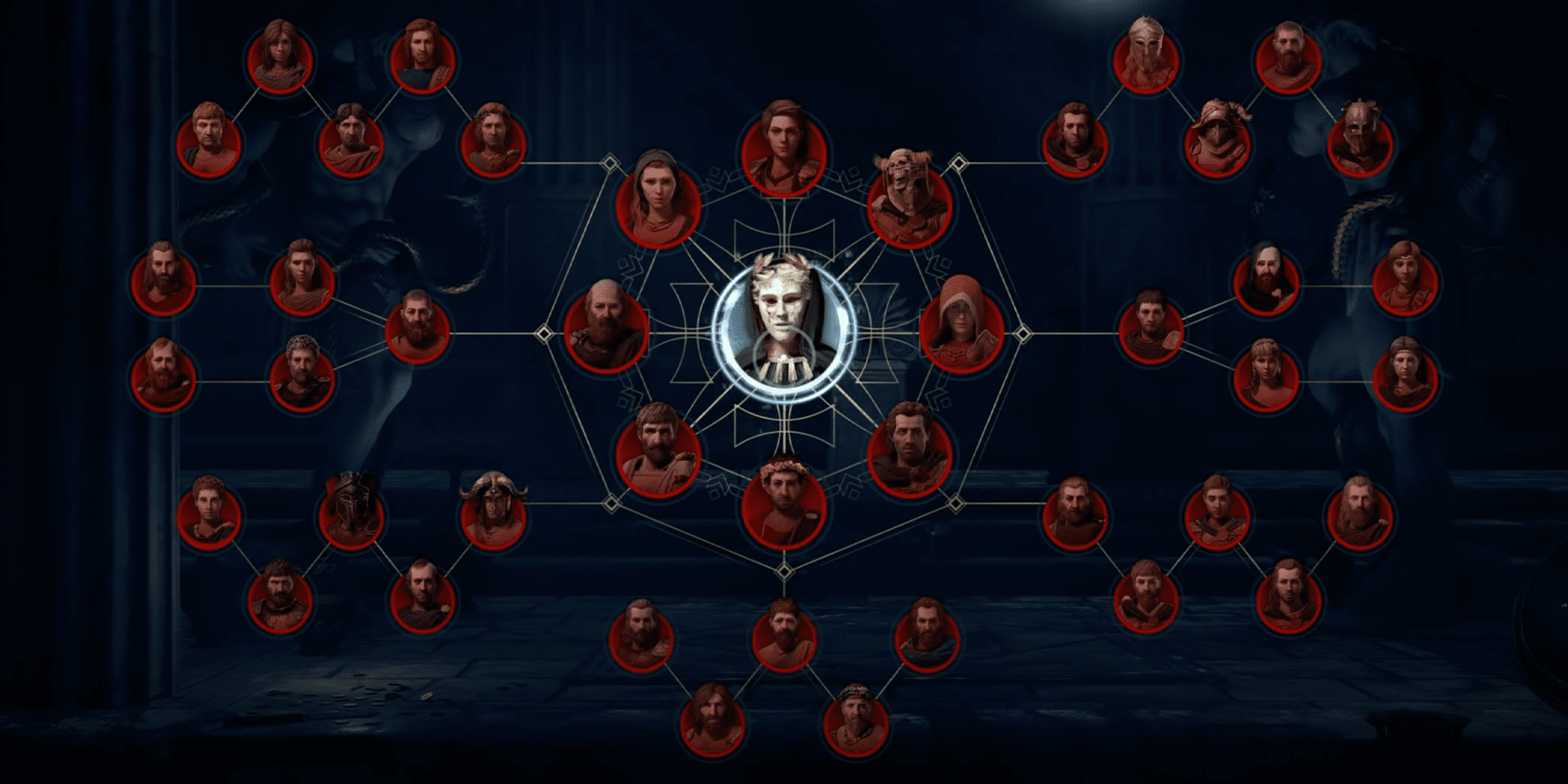 Chart outlining the Cult of Kosmos' ties for The Twelve Trials' ninth Assassin's Creed: Odyssey question |