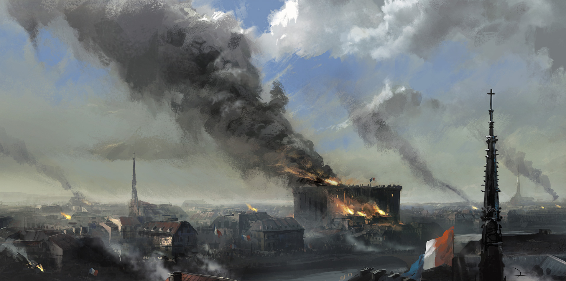 Concept art of the storming of the Bastille. |