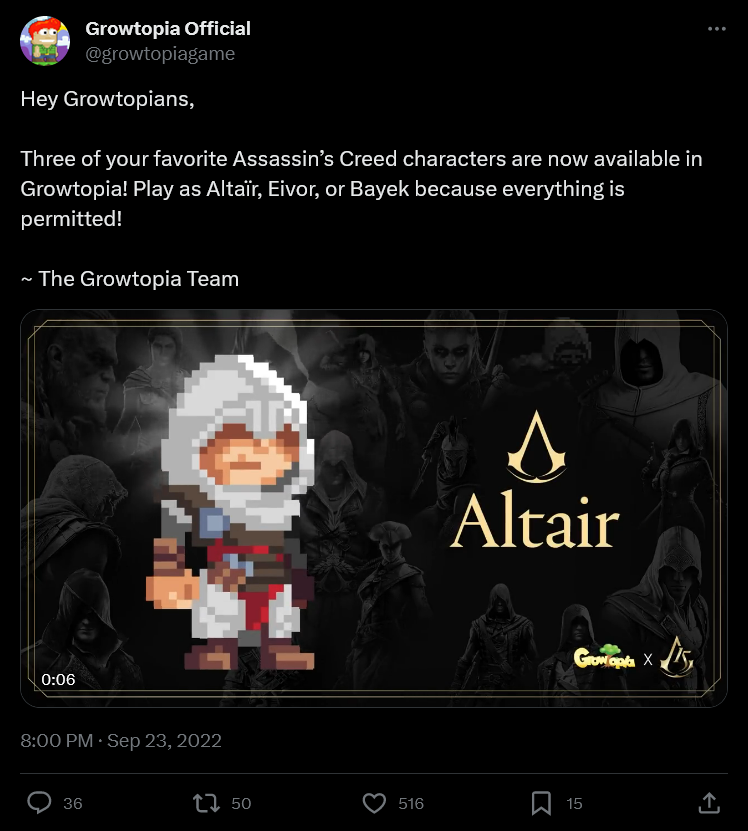 Growtopia collaboration announced with Assassin's Creed for its 15th anniversary |