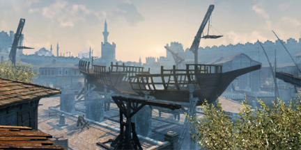 In 1511, the Assassin Ezio Auditore da Firenze incited a riot within the harbor, by using heralds to speak to nearby civilians about the abuse of power by the Janissaries. The rioters banded together in forcing open the Arsenal gates, setting fires and attacking the Janissaries, while Ezio used the confusion within as an opportunity to seek out a member of the Templar Order, Manuel Palaiologos.[2]