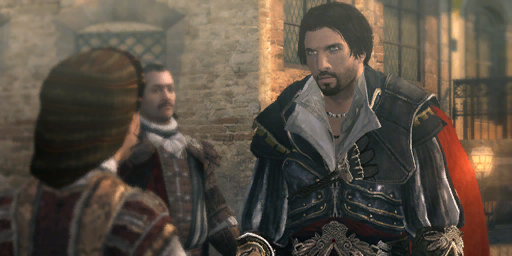 - When using Eagle Vision during the scene while Ezio spoke to Claudia, Mario did not appear to have any aura at all, while Claudia was shown in blue.