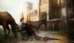 As such, guards stationed along the paths of the Kingdom were always wary of horsemen, particularly if they were riding hard, or acted as if they were being pursued. With this in mind, most Assassins made it a point to ride slowly when in the presence of alert guards.[5]