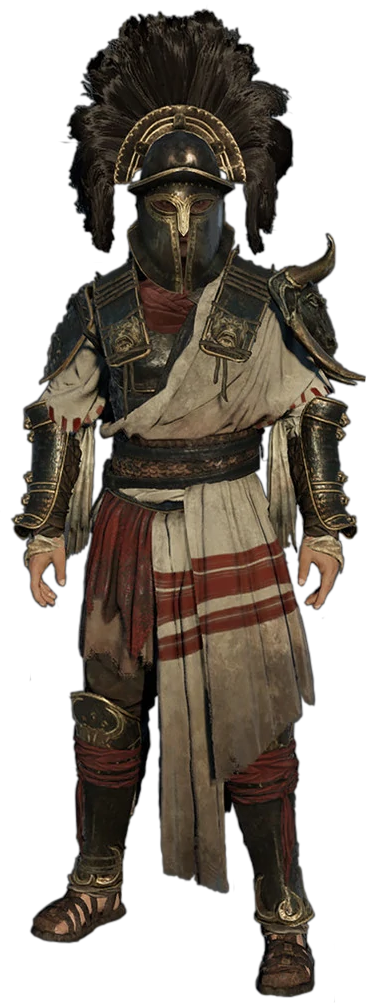 Hypatos was a warrior with a fervent conviction in the principle of honor. His loyalty to his master, Rudjek, was so steadfast that he continued to serve him even after his death by hunting his killer, the Medjay Bayek. While his resolve to avenge his master echoed the Bayek's own relentlessness in pursuing Rudjek, Hypatos was driven less from a personal vendetta but more from a dedication to duty. As he repeated to Bayek throughout their duel, rebuffing his foe's offer of peace, it was an uncompromising "question of honor" that he kill him or die in the attempt. It mattered little what character was his master; having sworn an oath to protect him, he did not believe it was of any relevance that Rudjek was, as Bayek asserted, a "murderer". All the same, true to his warrior ethos, he was capable of acknowledging and even respecting the a Medjay's status as that of a "worthy opponent".[3]