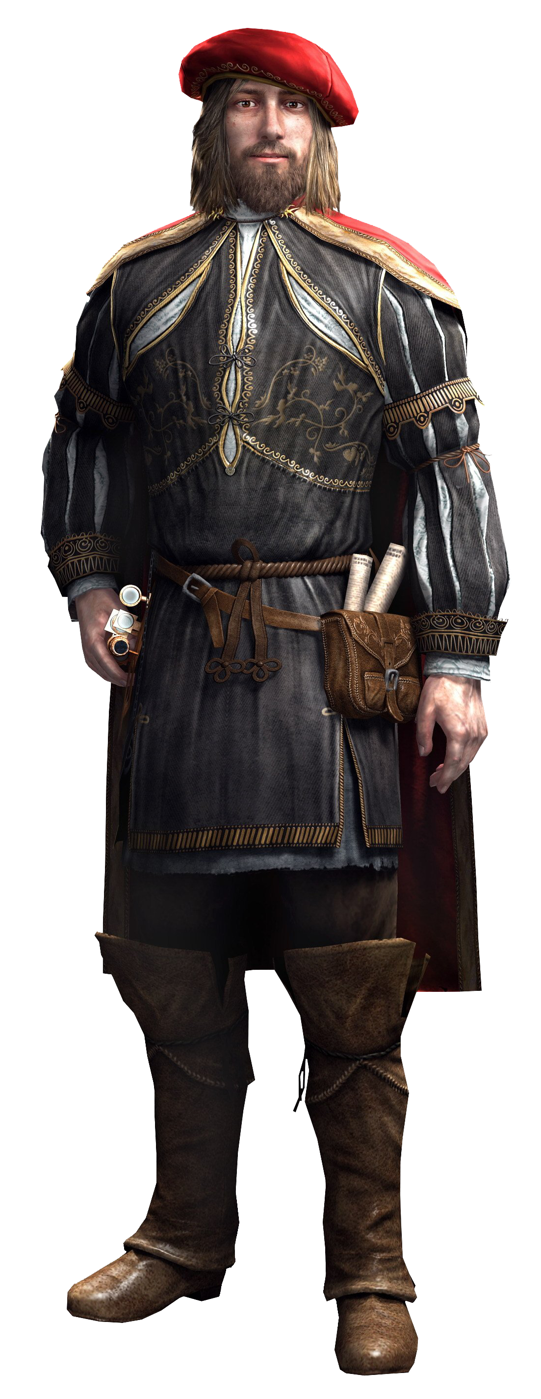 In late 1499, Leonardo was forcibly pressed to work for the Borgia as Rodrigo became pope. Cesare Borgia. He created pistole for Rodrigo's son Cesare, General of the Papal Army. These firearms were used by the Papal Guard and Cesare used one of it to kill Mario Auditore during the Siege of Monteriggioni.[24]