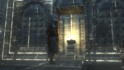 It took a year for them to discover the door, but by March 1511, three months after the discovery, the workers had not even managed to make a dent on the library's entrance. As the Templars in Constantinople frantically searched for the library's keys, Ezio arrived at Masyaf, only to be confronted and captured by Leandros' forces. After escaping his own execution, Ezio traveled to Constantinople, in a race to find the keys before the Templars and gain access to the library.[2]