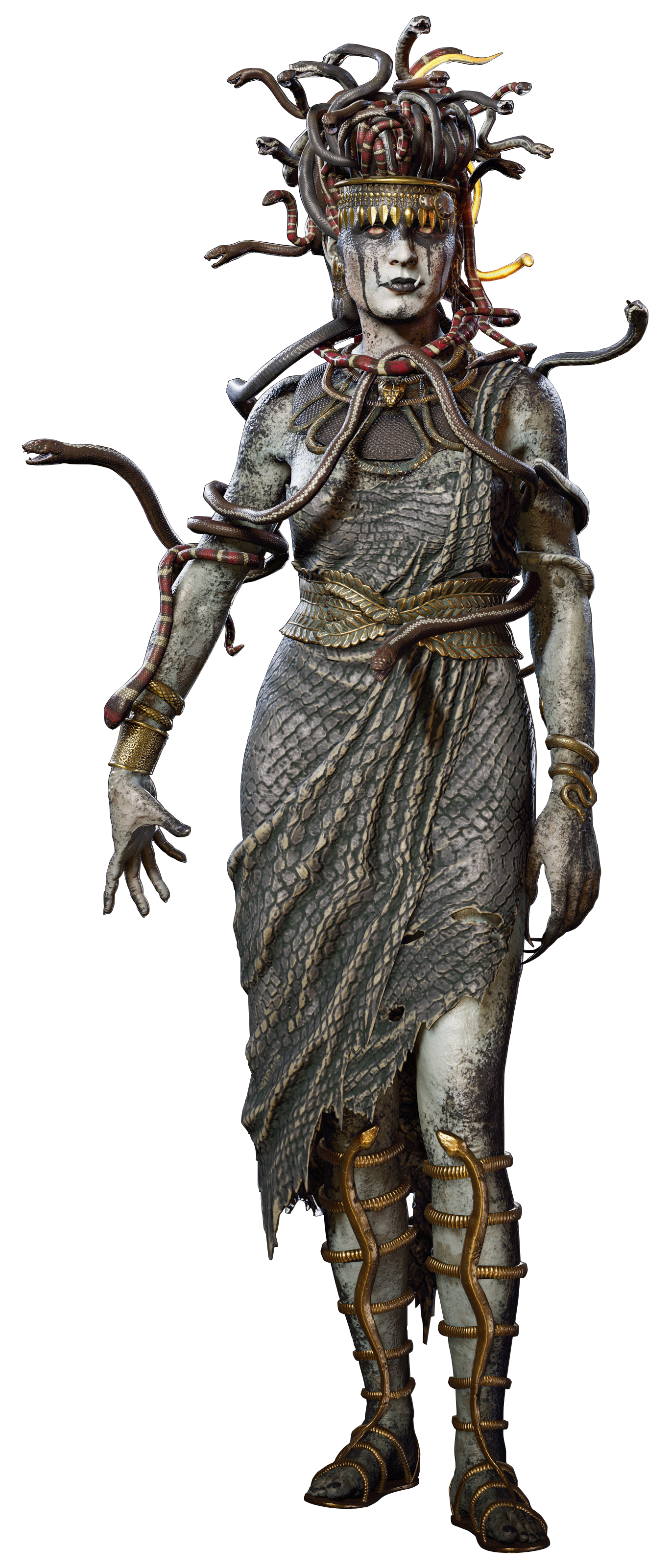 Ligeia (died c. 422 BCE) was a Daughter of Artemis who lived on Lesbos in the 5th century BCE. In the early years of the Peloponnesian War, she became the last victim of the Prize of the Medusa in the Petrified Temple on Lesbos. This was an Isu artifact which transformed humans into monsters resembling Medusa from the Greek myths, with serpentine hair and the ability to turn organic beings to stone. Known as Writhing Dread, Ligeia was ultimately slain by the mishios Kassandra when searching for her whereabouts on behalf of Ligeia's lover Bryce, after which the mercenary was able to contain the device and bring it to the gates of Atlantis.