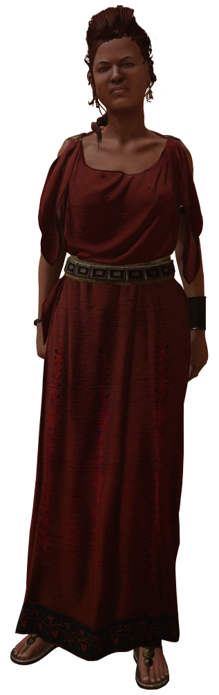 In time, Melitta's activities and absence from the Asklepieion drew the attention of the town's healer Praxilla. After learning of Melitta's location in the mountain shrine, Praxilla traveled there to confront the priestess, but was captured by her guards instead. However, the Medjay Bayek was able to track down Praxilla's location, eliminating Melitta and her guards, saving Praxilla's life.[1]