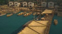 In 1582, the Kakushiba ikki members Fujibayashi Naoe and Yasuke ventured towards the port to aid their newfound ally Rufino in his task to stop a group of hired killers from attacking local influential people. At the port, they caught sight of a ship in Sakay's bay and swam towards it. Onboard, they destroyed all of the killers' intel while Rufino was attacked by one of the killers and his men. Together, Naoe and Yasuke managed to eliminate them and save Rufino.[3]