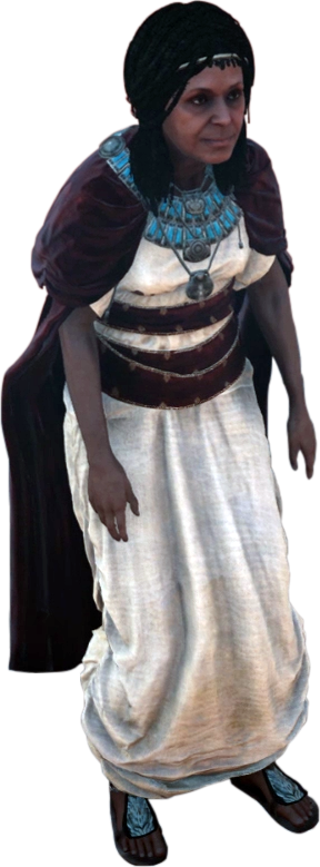 Notwithstanding this, she also saved the life of Bayek's eagle companion, Senu, who had been presumed dead by Bayek.[1] To manage her work, she established a makeshift House of Life in the ruins of the old local temple to serve as a clinic, paying the local nomarch for permission to operate there. Nevertheless, every few weeks, the same group of Medunamun's soldiers would stop by to pillage the House of Life of its medicine and food stocks, calling it a tribute for the Pharaoh's Royal Army.[3]