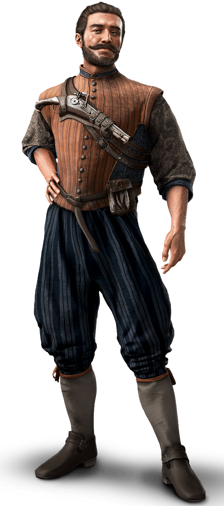 After giving a list of their names to Ermigo, Rufino soon learned of a contact's death and investigated it. He discovered that a mysterious group was targeting the people on his list, seeking to eliminate and replace them with their own allies to increase their influence. After learning that all the information he had gathered was kept on a ship off the coast of Sakai, Rufino knew he had to destroy it, and decided to visit the only true ally he had left: Tomiko. Meanwhile, the Portuguese Templar Gaspar learned of Rufino's betrayal and ordered Ermigo to kill him before he exposed their plans.[2]