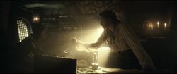 After explaining Grosvenor's true identity and goals, Cardona agreed to help Bolden, and the pair tracked Grosvenor to a war-torn village.[69] During a fight against Cardona's former cellmates, who had been turned to the Instruments' cause, Grosvenor offered Cardona one last chance to activate the Koh-i-Noor. The Assassin did so, but turned the Piece of Eden's powers against Grosvenor, destroying the church they were in. While Grosvenor escaped and later left Spain, Cardona and Bolden decided to safeguard the Koh-i-Noor, which remained buried among the church's debris.[70]