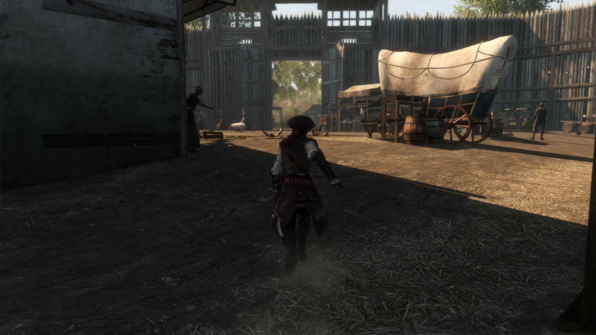Although she was ambushed by guards outside the city gates, Aveline managed to escape and hide in the bayou.