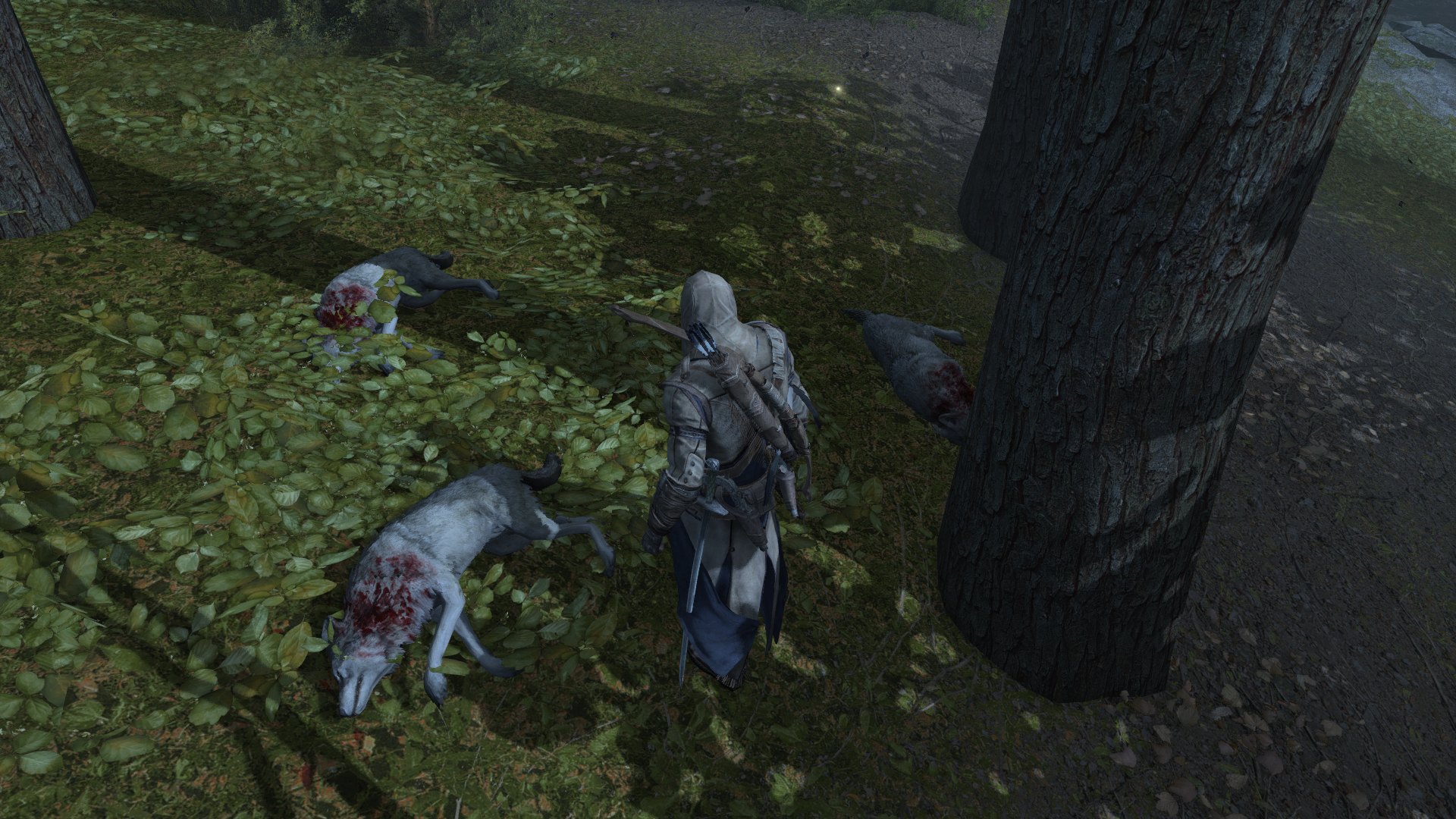 Connor stumbled on a wolf pack, and began killing them, drawing out the alpha wolf into the open.