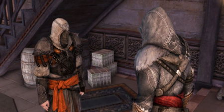 Ezio Auditore arrived at the hideout and met up with one of his apprentices, where they discussed the deaths caused by Vali cel Tradat, a former Assassin.